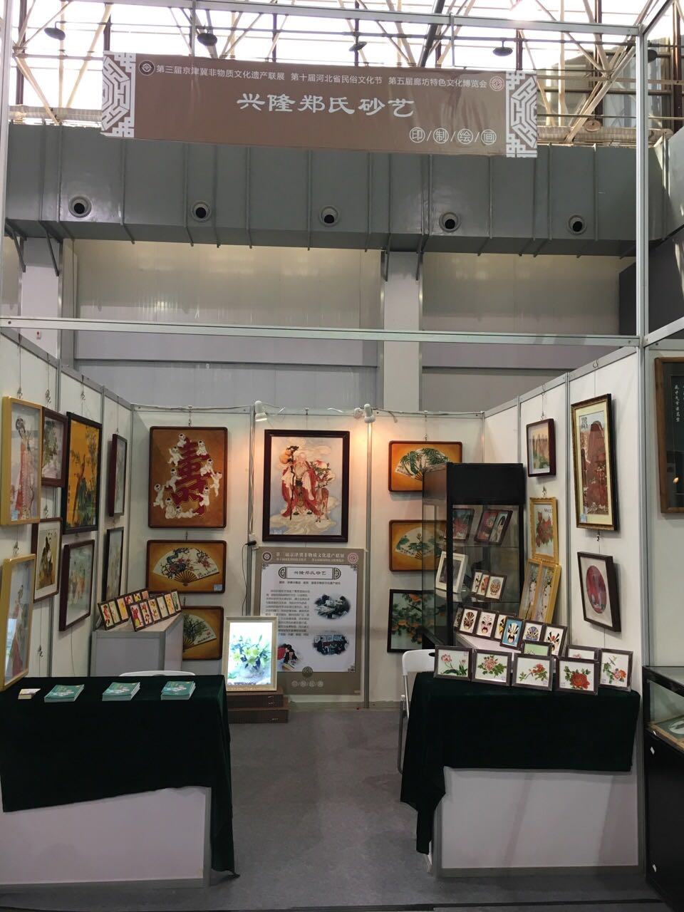 本次展會有來自京津冀各地區(qū)的企業(yè),其中河北省有幾十家非遺產品代表企業(yè)參加。期間,鄭氏砂藝的砂畫作品得到了省文化廳領導和參展商的認可,同時也參觀了其他企業(yè)的手工藝術品,各式各樣的傳統(tǒng)手工藝品美輪美奐,不同的創(chuàng)作手法也讓鄭氏砂藝的參展員工大開眼界。通過本次展會的參觀與學習,讓我們了解到了很多優(yōu)秀的產品與技術,對今后的創(chuàng)作和公司的發(fā)展起到了更深的推進作用。