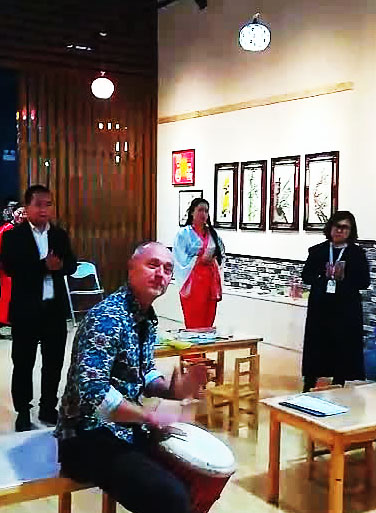 2018年10月28日,德國(guó)文學(xué)教授、非洲鼓音樂(lè)大師費(fèi)蘭特應(yīng)邀到訪石家莊冀臺(tái)聯(lián)青年文化創(chuàng)業(yè)園鄭氏砂藝非遺文化傳承教育基地。期間,費(fèi)蘭特現(xiàn)場(chǎng)表演非洲鼓。
