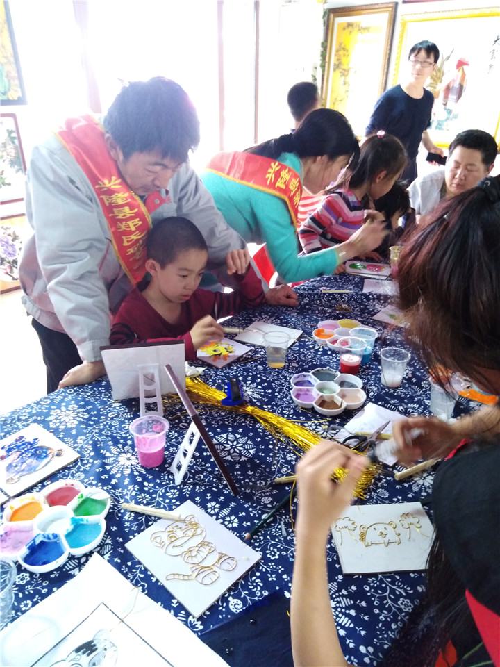 圖為鄭氏砂藝?yán)蠋熤笇?dǎo)體驗學(xué)生作畫