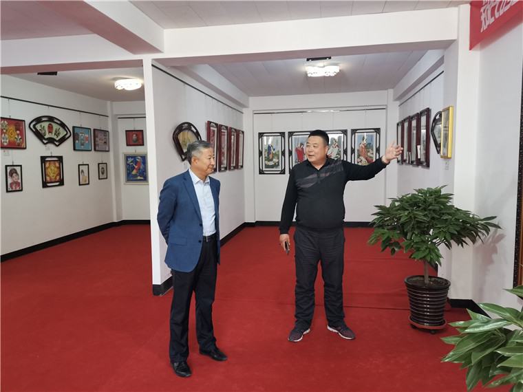 2020年5月14日上午,興隆縣人民政府副縣長楊文利來鄭氏砂藝調(diào)研指導工作,楊縣長在鄭鐵軍董事長的陪同下參觀了鄭氏砂藝非遺展館,并對砂畫作品和企業(yè)發(fā)展提出了寶貴建議。