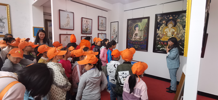 參加此次研學(xué)活動(dòng)的師生共計(jì)180余人,小朋友們?cè)谖夜局v解員的帶領(lǐng)下興致勃勃的參觀了鄭氏砂畫(huà),了解了鄭氏砂藝“非遺”文化的發(fā)展歷程、工藝技術(shù)和傳承意義,觀看了砂畫(huà)制作解析視頻,最后進(jìn)行了砂畫(huà)的實(shí)際操作。