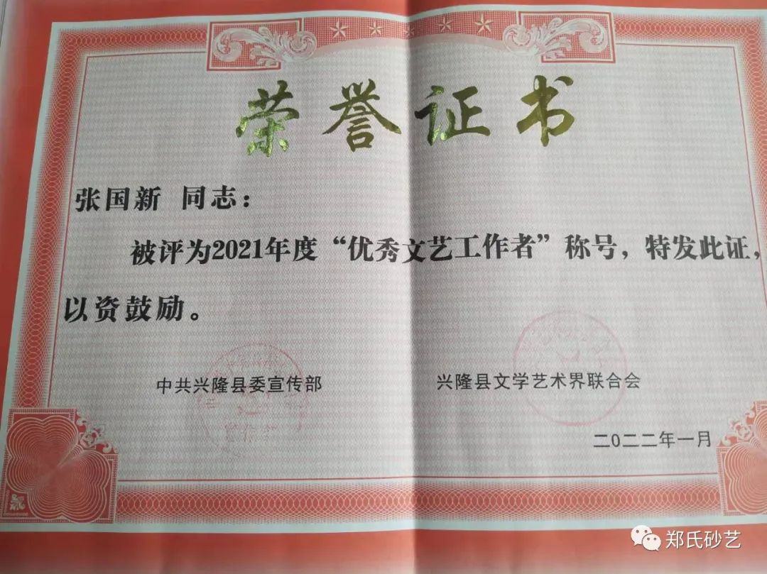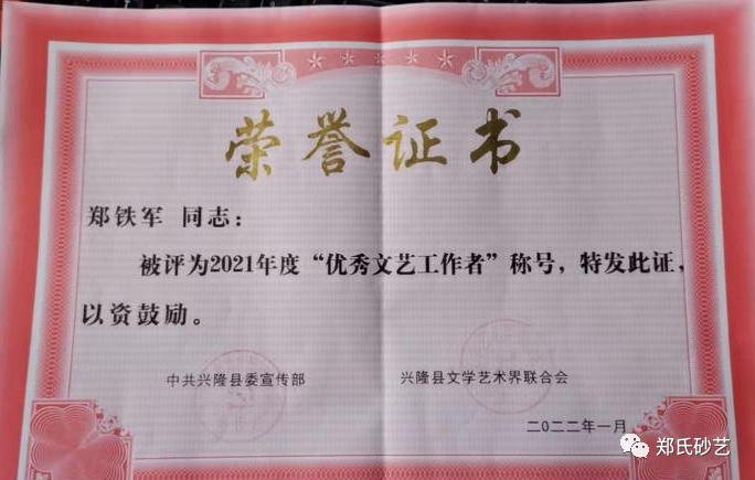 近日,縣委宣傳部、縣文聯(lián)發(fā)表了《關(guān)于表彰2021年度優(yōu)秀文藝家協(xié)會、優(yōu)秀村級文聯(lián)、優(yōu)秀企業(yè)文聯(lián)、優(yōu)秀文藝工作者的決定》,文中指出“2021年,在縣委、縣政政府的堅強(qiáng)領(lǐng)導(dǎo)下,在市文聯(lián)的直接指導(dǎo)下,全縣廣大文藝工作者,深入學(xué)習(xí)貫徹黨的十九大和習(xí)近平文藝座談會上的講話精神,在‘鄉(xiāng)村振興黨旗紅·文藝創(chuàng)新樹先鋒’和‘文藝名村’建設(shè)實踐活動中,辛勤耕耘,積極創(chuàng)作,服務(wù)人民,為繁榮全縣文藝事業(yè)做出了積極貢獻(xiàn),涌現(xiàn)出了一大批表現(xiàn)突出、成績優(yōu)異的文藝工作者。”在此次通報表彰中,鄭氏砂藝董事長鄭鐵軍、徐書英、王鳳艷、趙文紅、張國新、王建寶、張玉紅、張秀榮、王婷共9人被縣委宣傳部和縣文聯(lián)授予2021年度“優(yōu)秀文藝工作者”稱號。企業(yè)將繼續(xù)開拓創(chuàng)新,潛心創(chuàng)作,努力發(fā)掘出更多文藝人才,壯大鄭氏砂藝藝術(shù)研究所,創(chuàng)作出更多文藝精品,為推進(jìn)新時代興隆縣文藝事業(yè)繁榮發(fā)展作出新的更大貢獻(xiàn)。
