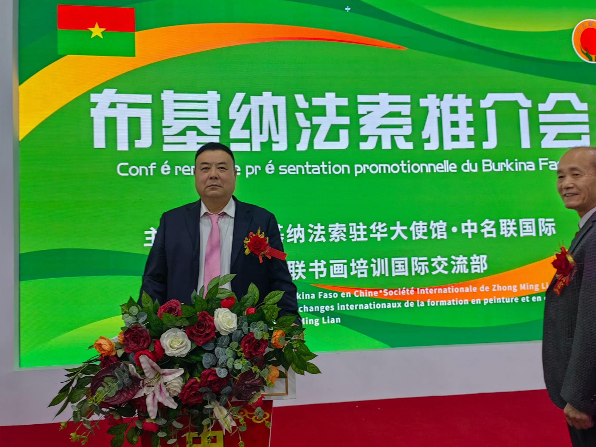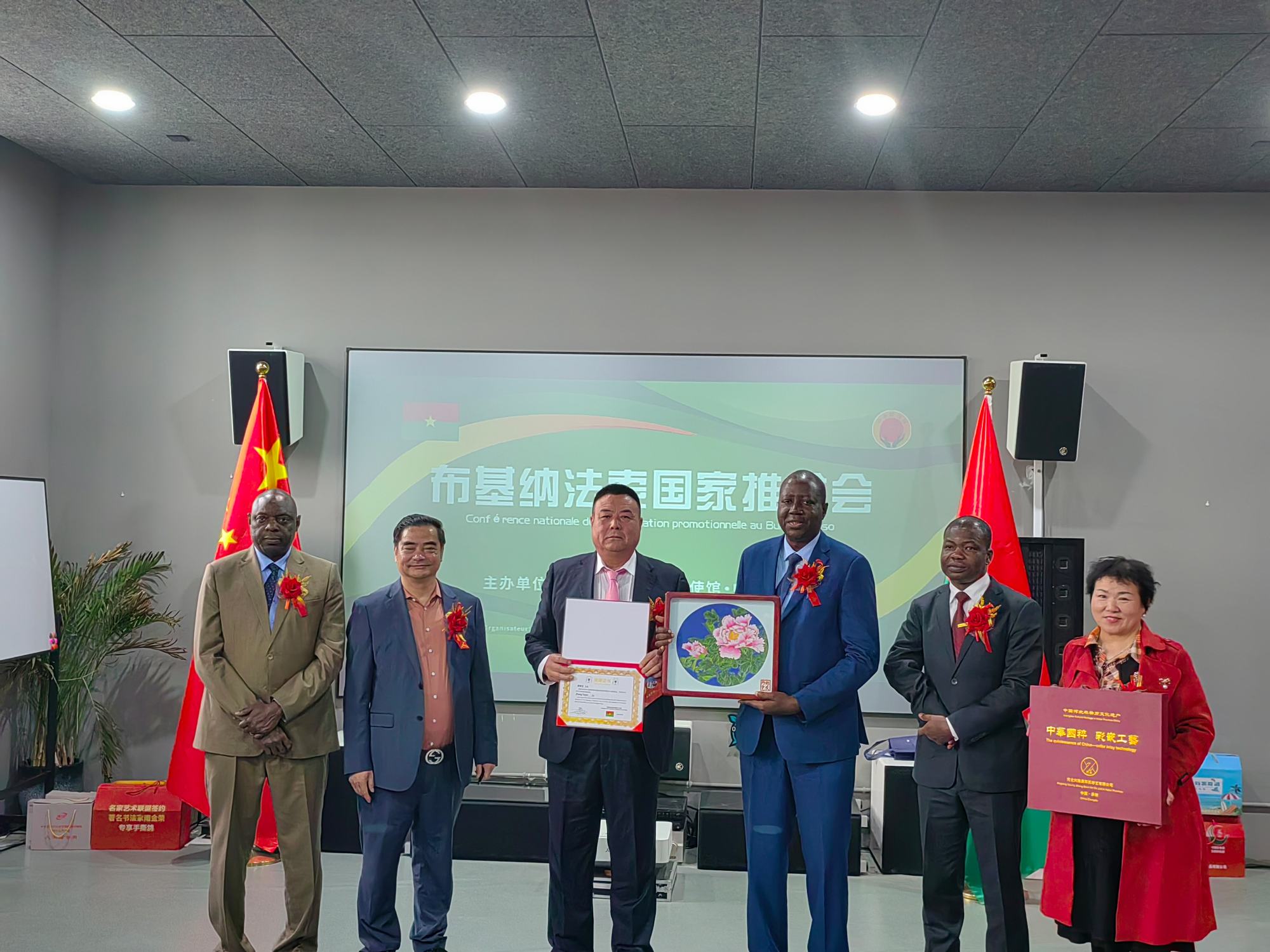 2023年4月12日,興隆縣鄭氏砂藝文化有限公司執(zhí)行董事長鄭鐵軍參加由布基納法索駐華大使館.中名聯(lián)書畫培訓(xùn)國際交流部主辦的“布基納法索國家推介會”和“中名聯(lián)191期經(jīng)濟(jì)與藝術(shù)交流會”。會上,布基納法索共和國駐華大使團(tuán)、商務(wù)代表團(tuán)一行對鄭鐵軍的砂畫作品高度贊賞,并現(xiàn)場簽訂了訂購協(xié)議,頒發(fā)了收藏證書,授予鄭鐵軍“中非文化交流使者”榮譽(yù)稱號。
