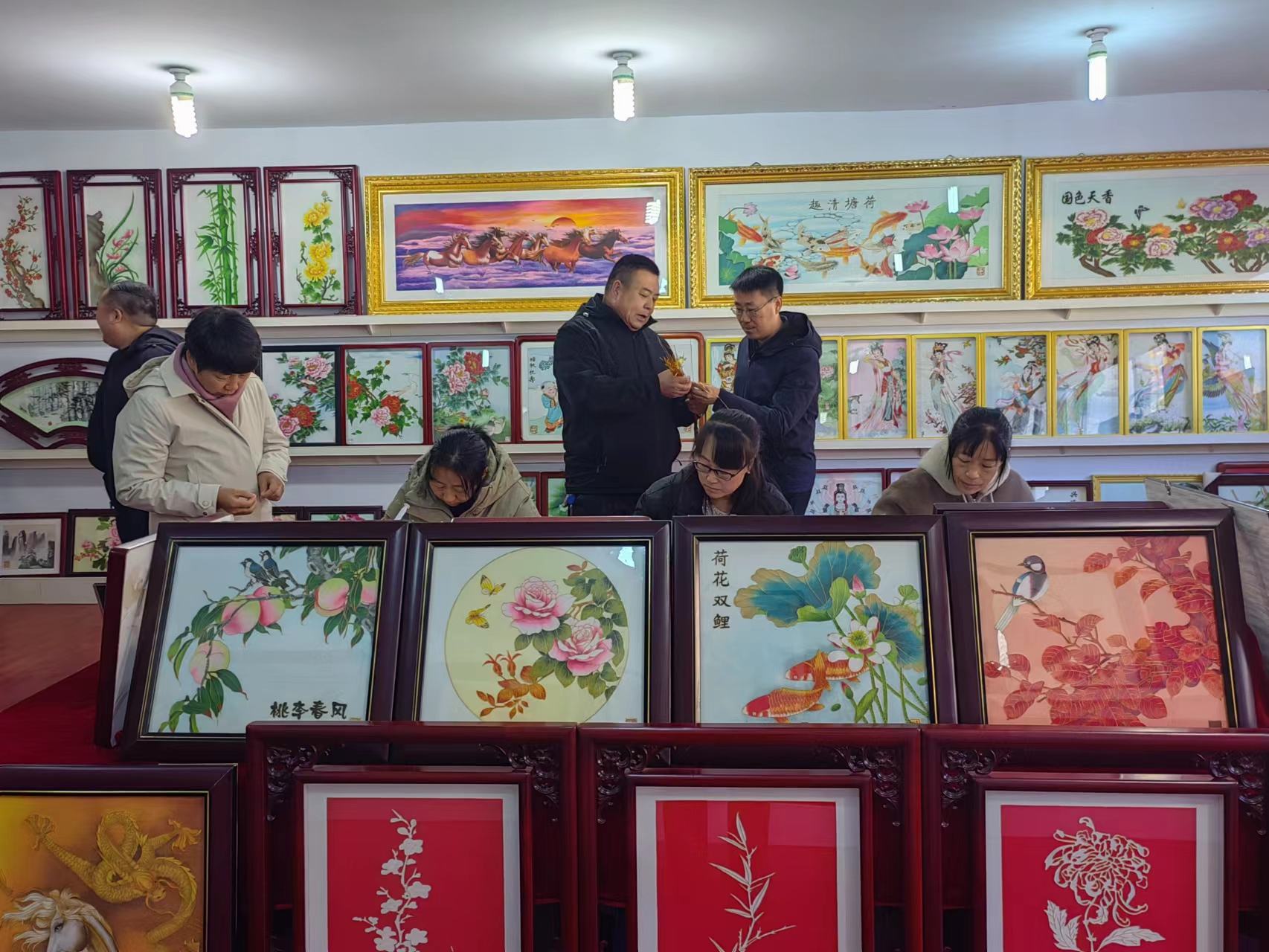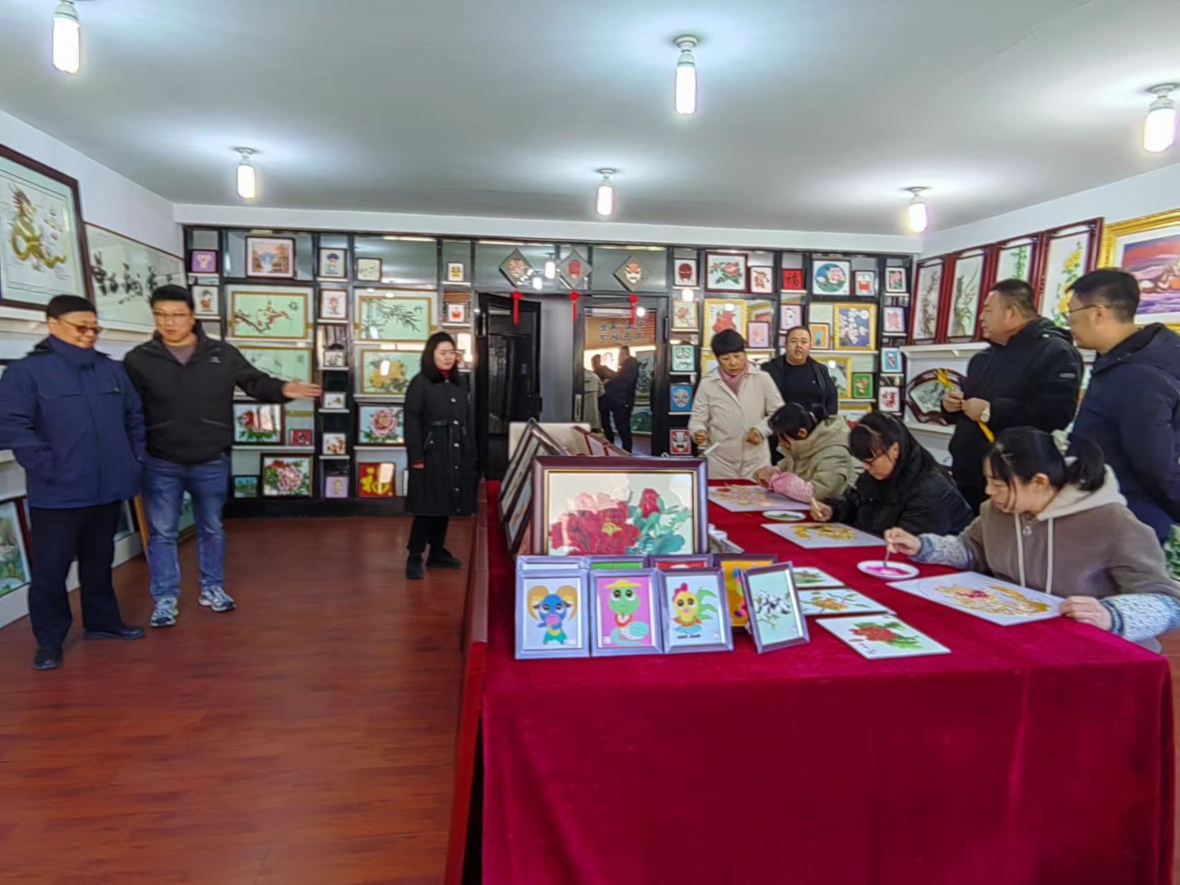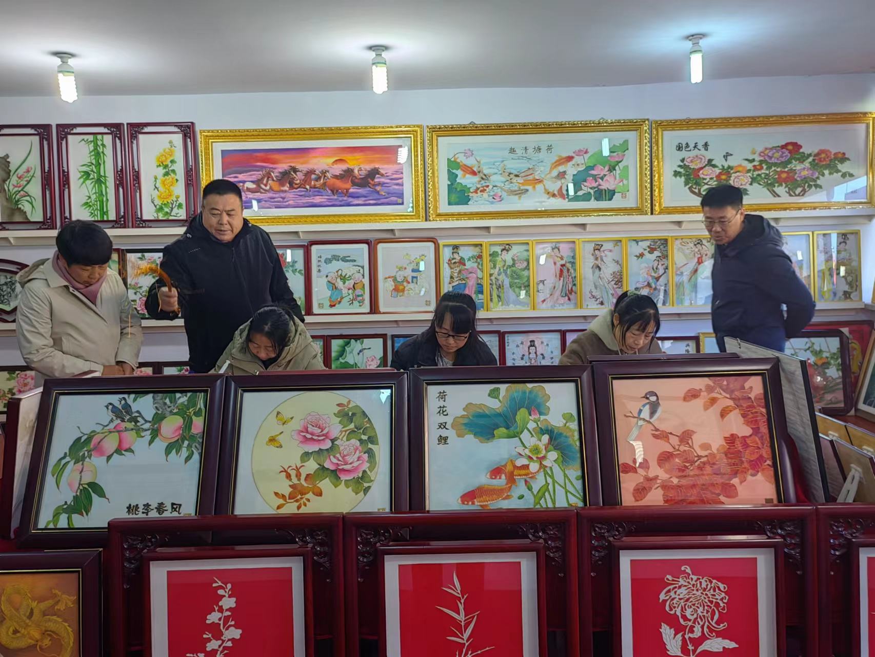 丁宇超副部長一行在鄭氏砂藝董事長鄭鐵軍的陪同下,逐一參觀了鄭氏砂藝展覽館和文化名家工作室,觀看了技師的砂畫制作手法,以及砂畫主要材質(zhì)和制作步驟,對鄭氏砂藝傳統(tǒng)技藝頗為驚訝和感嘆,贊嘆一幅幅栩栩如生的砂畫作品,就是我們的畫師用一雙雙纖纖玉手這樣一點一點地制作完成的,簡直是妙手回春,點砂成金。