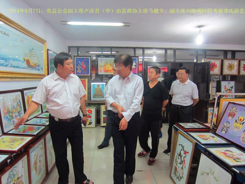 2014年8月7日,河北省總工會副主席盧彥君在縣總工會主席王立群、縣政協(xié)主席馬健全、副主席劉海明、秘書長劉立強的陪同下,來到鄭氏砂藝公司進行考察調(diào)研。