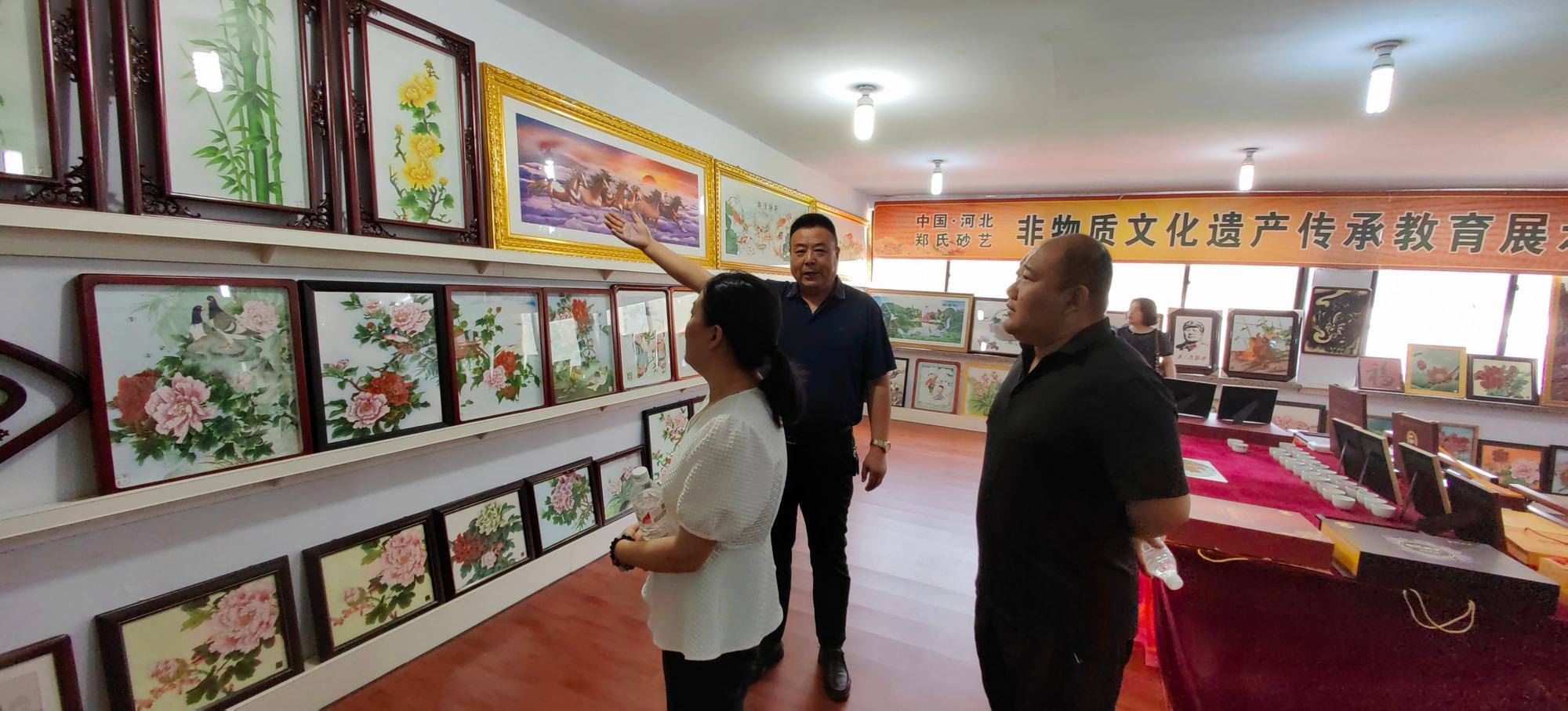 2024年7月9日,避暑山莊博物院副院長研究員蔣秀丹、承德市文物局博物館科科長楊坤、市文物局博物館管理科白彬、避暑山莊博物院文物典藏部主任副研究員沈云偉、興隆縣旅游和文化廣電局黨組成員高子營、興隆縣博物館館長閆偉生對(duì)興隆縣鄭氏砂藝非遺博物館開展調(diào)研考察,考察團(tuán)在鄭氏砂藝董事長鄭鐵軍的陪同下分別參觀了鄭氏砂藝(畫)生產(chǎn)車間、企業(yè)文化展館和鄭氏砂藝非遺博物館,考察團(tuán)對(duì)鄭氏砂藝(畫)技藝、鄭氏砂藝非遺博物館面積、館藏文物及配套設(shè)施進(jìn)行了實(shí)地參觀考察。