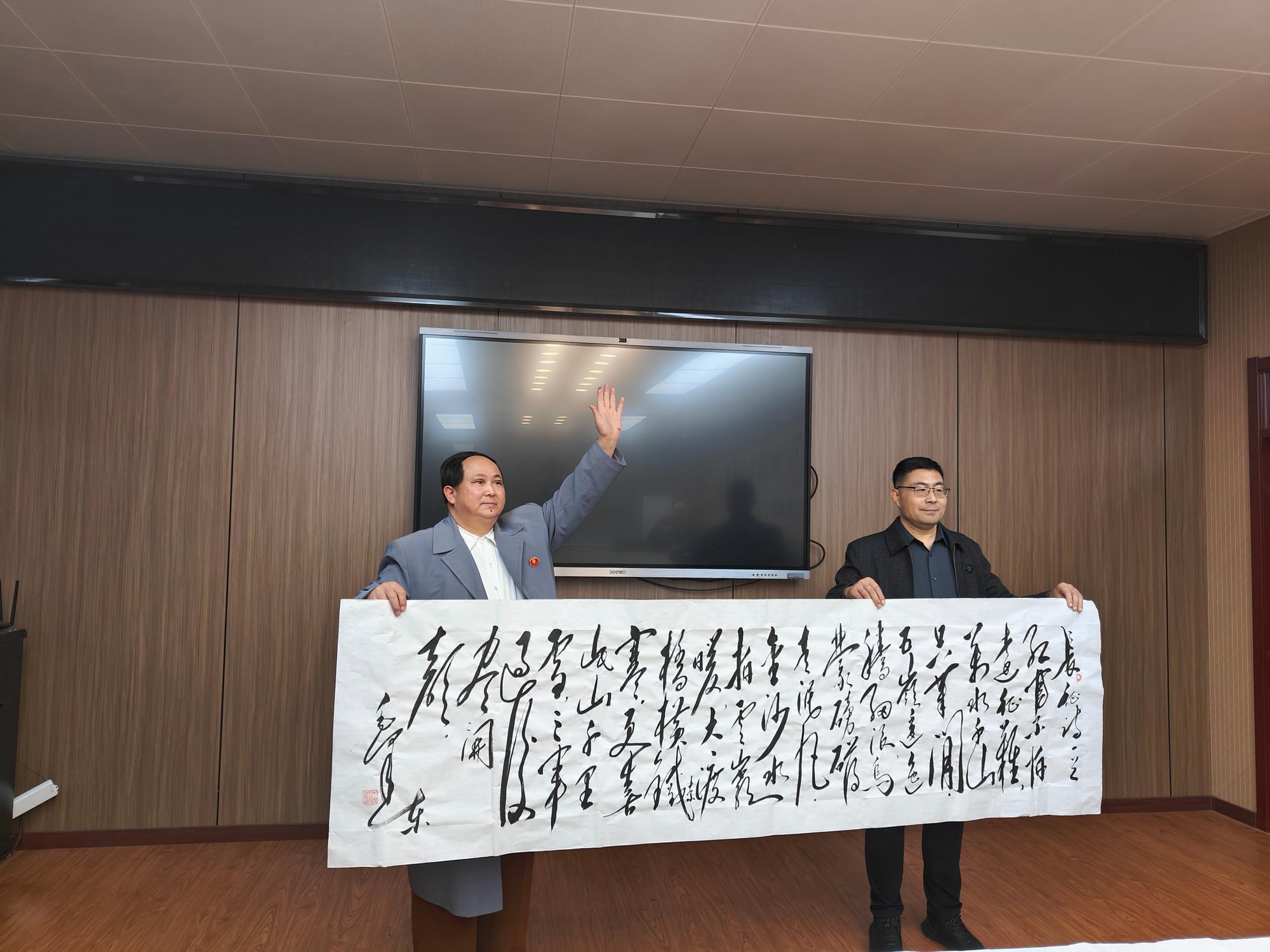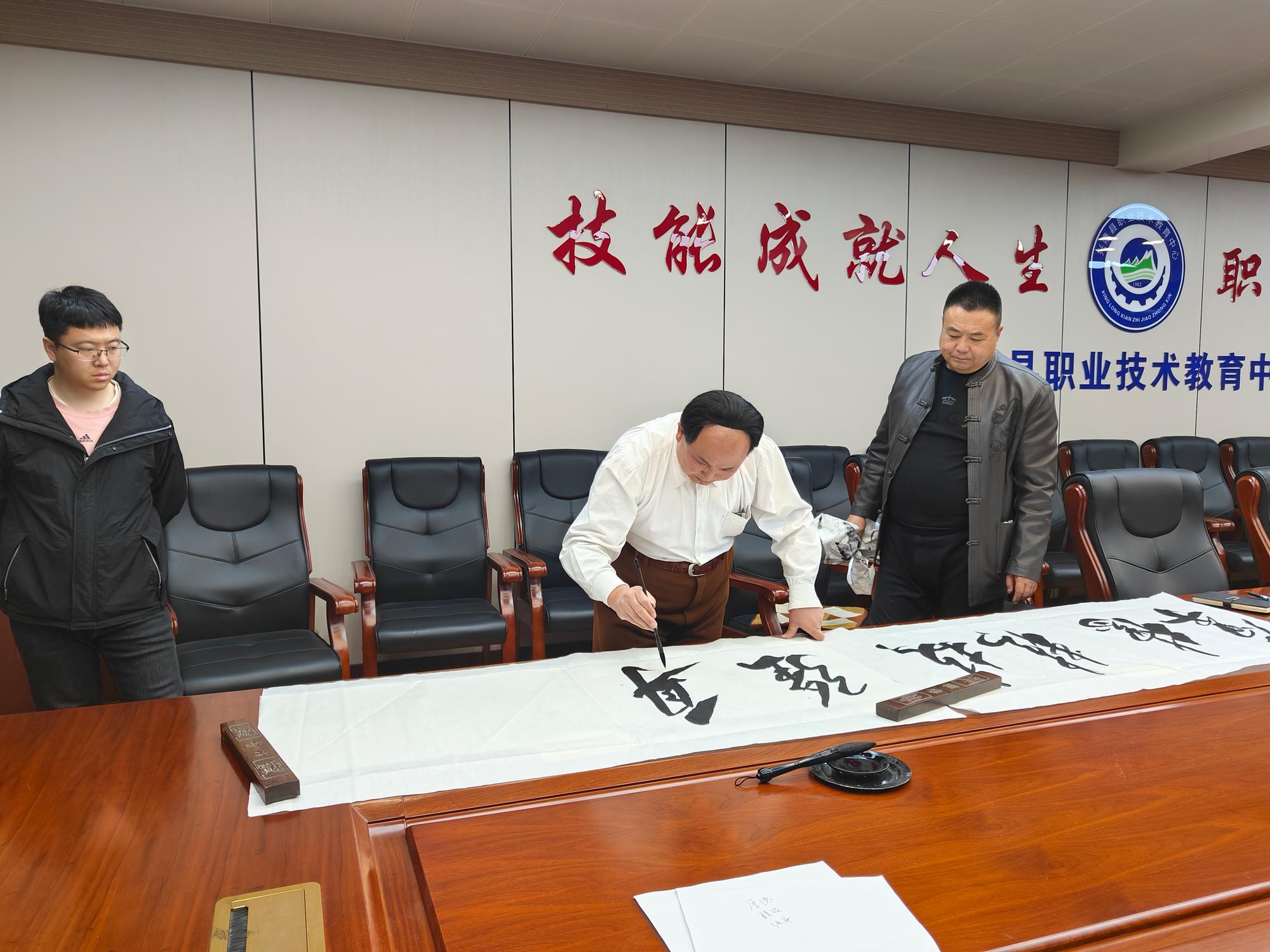 隨后,趙士奎老師移步至學(xué)校書法室,應(yīng)校領(lǐng)導(dǎo)的誠(chéng)摯邀請(qǐng),現(xiàn)場(chǎng)揮毫,為興隆縣職業(yè)教育中心題寫了校訓(xùn),即《厚德、精技、強(qiáng)身》。并書寫了詩(shī)詞《長(zhǎng)征》,此作品不僅向偉人致敬,更激勵(lì)著廣大師生傳承和發(fā)揚(yáng)長(zhǎng)征精神,為實(shí)現(xiàn)中華民族偉大復(fù)興的中國(guó)夢(mèng)不懈奮斗。