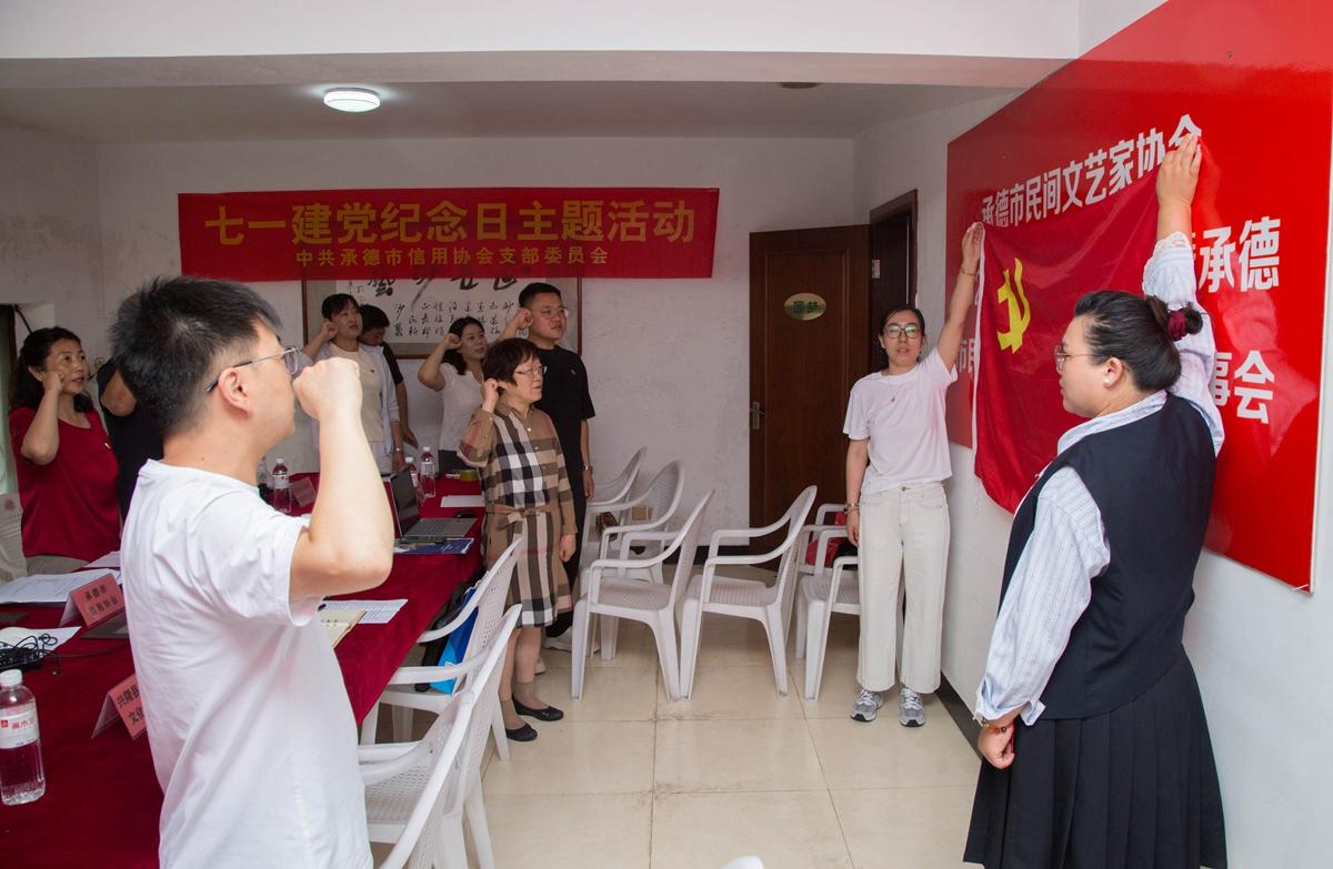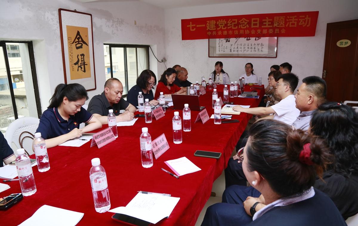 隨后,市信用協(xié)會黨支部開展了黨建交流環(huán)節(jié)。主持人王一然開場闡述建黨節(jié)意義及活動主題,鄭氏砂藝工會主席張國新分享企業(yè)發(fā)展成果。全體人員集中學(xué)習(xí)了2025年“七一”前夕中央重要會議精神,聚焦全面從嚴(yán)治黨、高質(zhì)量發(fā)展和誠信建設(shè)。緊接著,承德市信用協(xié)會黨支部書記高燕領(lǐng)誓,全體黨員重溫入黨誓詞,莊嚴(yán)承諾“為共產(chǎn)主義奮斗終身”。理事單位代表逐一介紹自身情況,豐寧順達(dá)礦業(yè)集團(tuán)副總經(jīng)理武鳳寶、興隆縣工商聯(lián)秘書長丁小虎及信用協(xié)會顧問初海云分別發(fā)表講話。