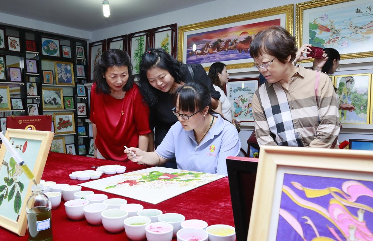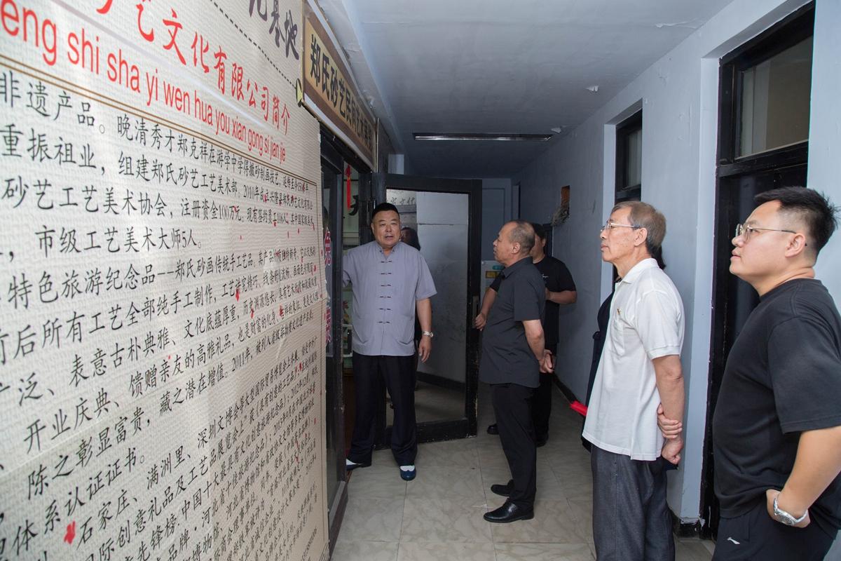 在鄭氏砂藝總經(jīng)理鄭鐵軍的引領(lǐng)下,參觀人員先后參觀了鄭氏砂藝非遺傳承基地和創(chuàng)新研發(fā)車間等工作場所,鄭總詳細(xì)介紹了公司發(fā)展歷程、非遺傳承成果及黨建引領(lǐng)經(jīng)驗,強調(diào)黨紀(jì)要求如何融入企業(yè)管理黨員參觀了公司展覽館,欣賞了各類砂畫作品,感受非遺魅力。