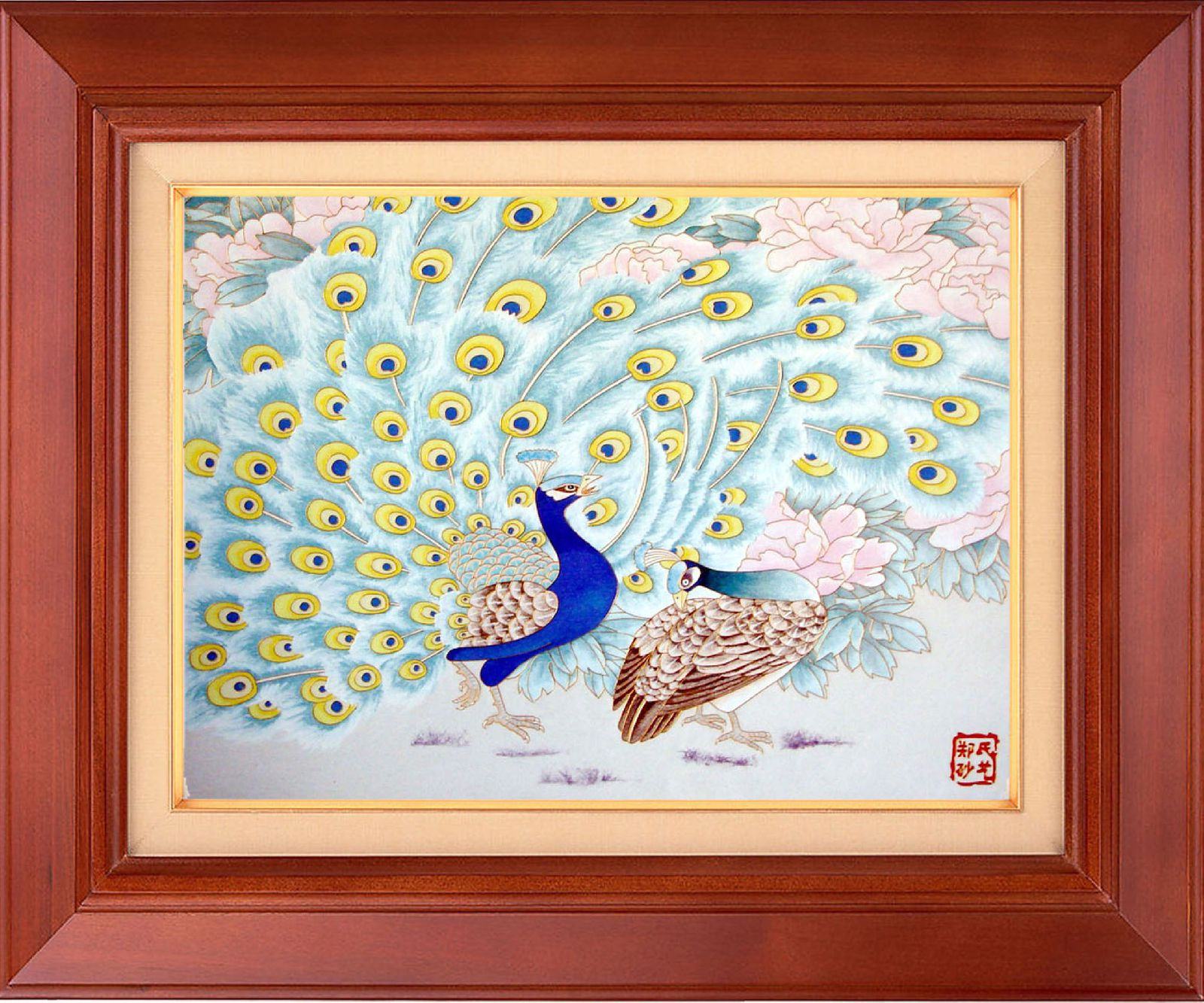 《牡丹孔雀圖》編號:H6規(guī)格:58*48*3.5cm